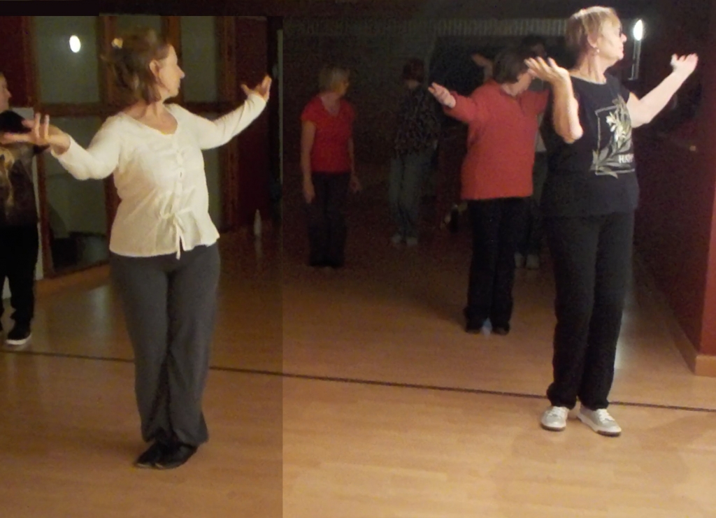Dans la bonne humeur et pleins de bonne volonté, chacune répète et répète chaque mouvement : en suivant l'mais aussanimateur i seule.